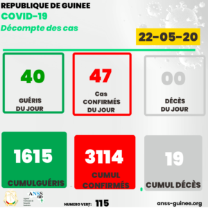 COVID-19 en Guinée : les chiffres de ce 22 Mai 2020