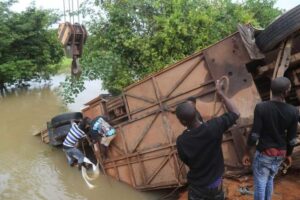 Selon les témoins, cet autre accident sur nos routes aurait été occasion par l’imprudence du chauffeur. Les uns affirment que le conducteur s’était endormi alors que d’autres parlent du poids des du camion qui aurait tiré l’engin dans la rivière.